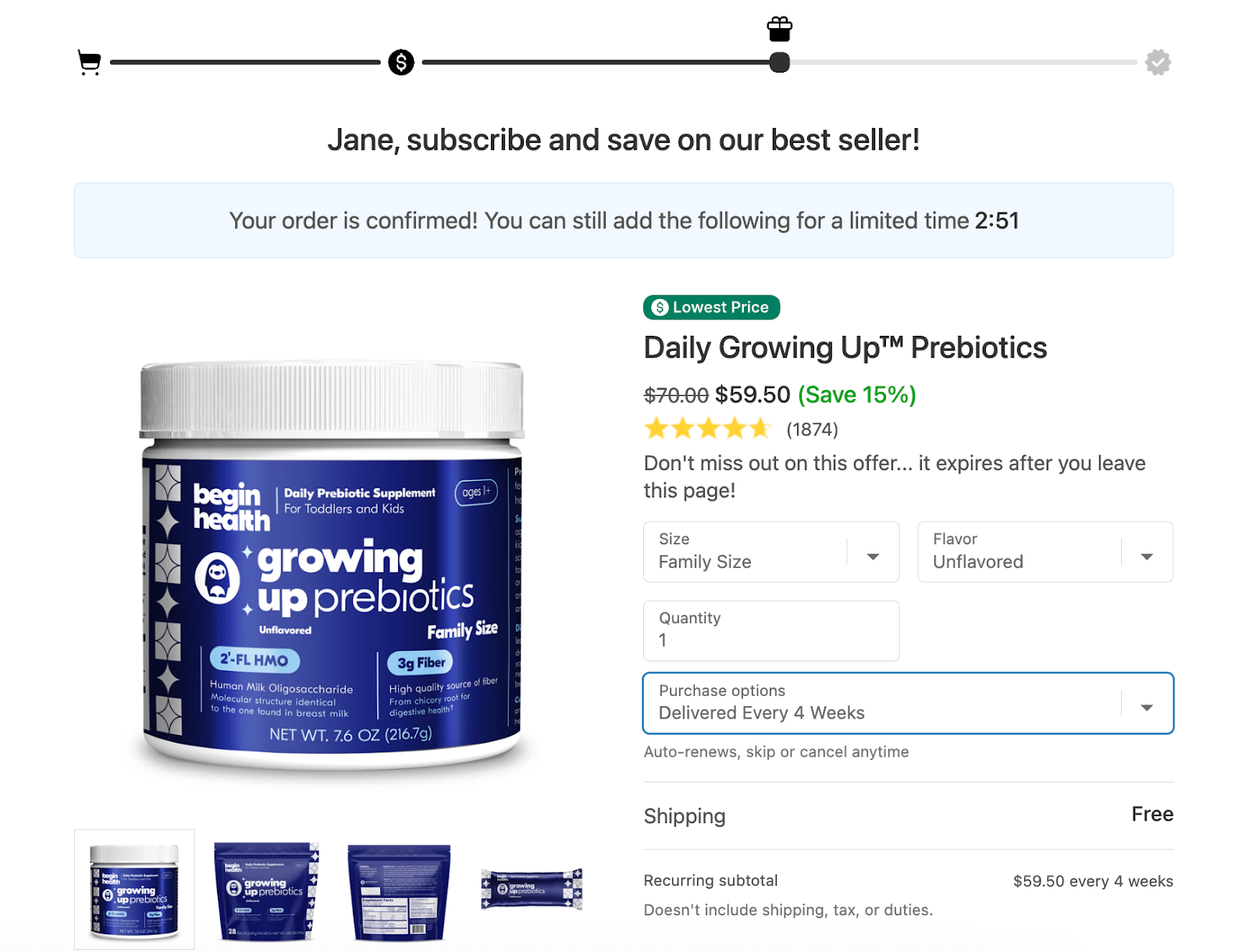 With access to far more data than before, the Begin Health team felt confident running upsell experiments to test different offers and placements: