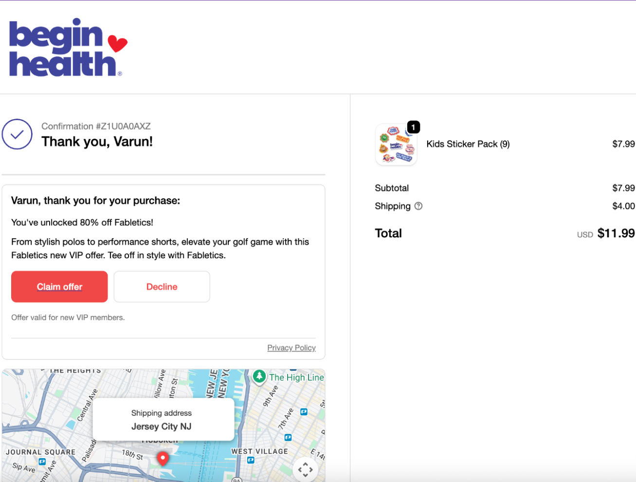 Instead of pushing the free stickers, Begin Health offered more strategic product add-ons that drove revenue higher than the free sticker pack.